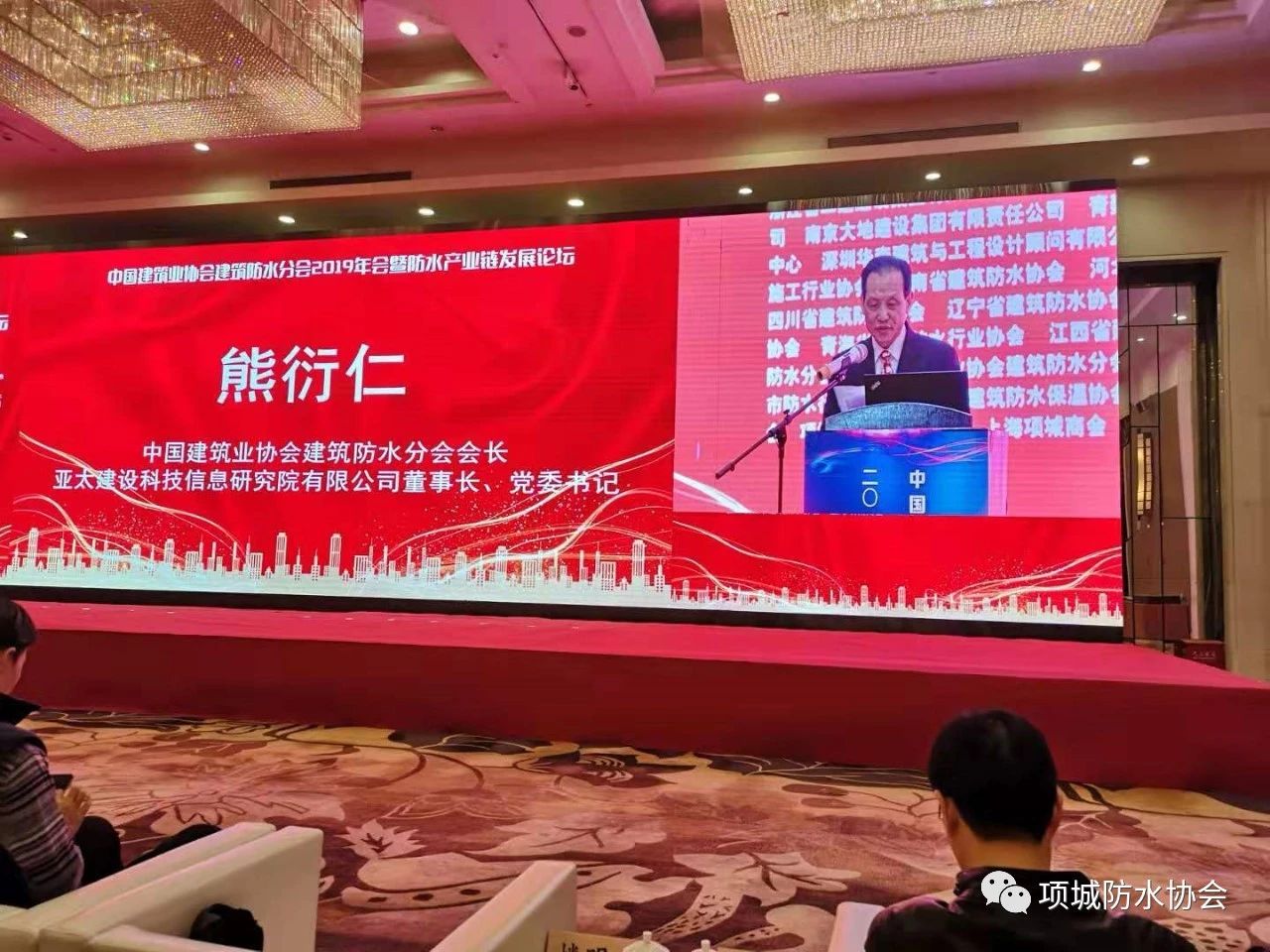 11月15日,中國建筑業協會建筑防水分會2019年會暨防水產業鏈發展論壇在上海召開。中國建筑業協會會長、原住建部總工程師、辦公廳主任王鐵宏,中國工程院院士肖緒文,中國建筑業協會副秘書長景萬,中國建筑業協會建筑防水分會會長熊衍仁、專家委員會名譽主任葉琳昌、專家委員會主任曲慧、常務副會長兼秘書長張可文等領導、專家及全國各地防水同行、地方防水社團組織領導、國內外專家學者共近300人出席會議。項城市政協副主席、防水協會會長王養嶺率領項城防水代表團參加此次大會。