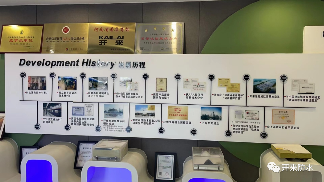 過去三年,開來濕克威在新材料領域中的防水材料的研發生產和應用技術積極開展研發活動,尤其是環保型和阻燃型防水材料的研發,取得一系列突破性成果: