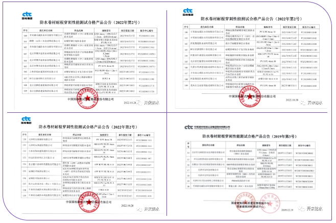 八款產品分別通過國家建筑材料測試中心的耐根應用性試驗,被廣泛使用于各種植屋面或種植類車庫頂板工程中,為項目建設方提供更加方便的選材用材之便。