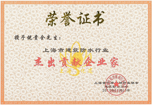 2017年11月11日,“上海市化學(xué)建材行業(yè)協(xié)會(huì)建筑防水分會(huì)”在上海召開(kāi),本次會(huì)上,上海開(kāi)來(lái)濕克威防水材料有限公司榮獲上海市建筑防水行業(yè)示范企業(yè);上海開(kāi)來(lái)濕克威防水材料有限公司董事長(zhǎng)、中國(guó)建筑防水協(xié)會(huì)常務(wù)理事、上?;瘜W(xué)建材協(xié)會(huì)防水分會(huì)副會(huì)長(zhǎng)、河南省防水協(xié)會(huì)執(zhí)行會(huì)長(zhǎng)倪貴全榮獲“上海市建筑防水行業(yè)杰出貢獻(xiàn)企業(yè)家”。