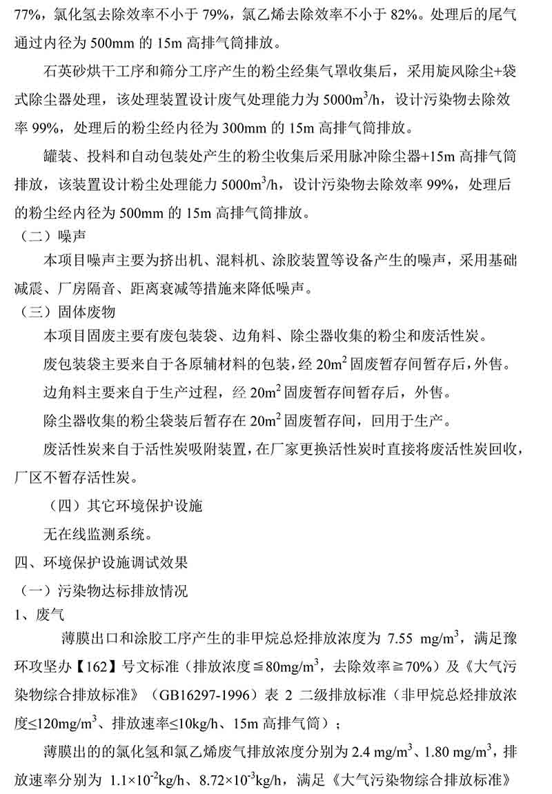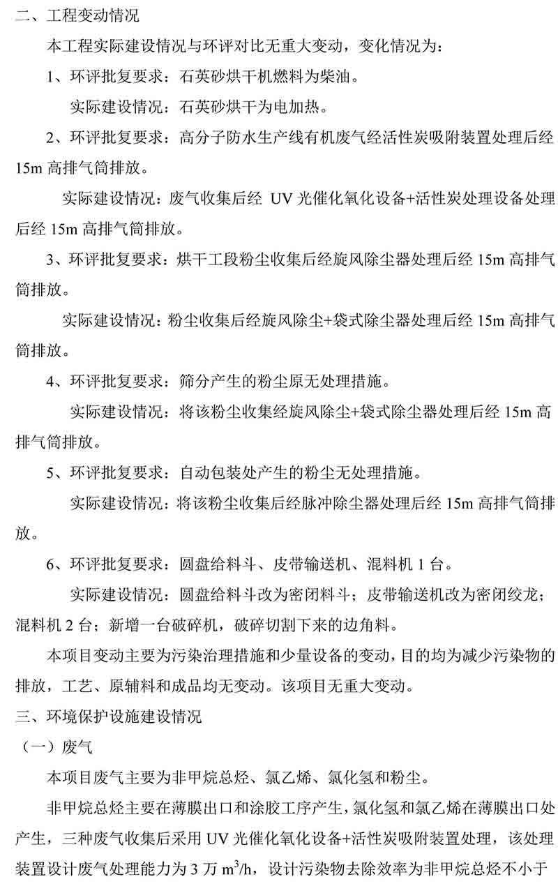 建筑防水新材料一期建設項目竣工環保驗收監測結論的公告